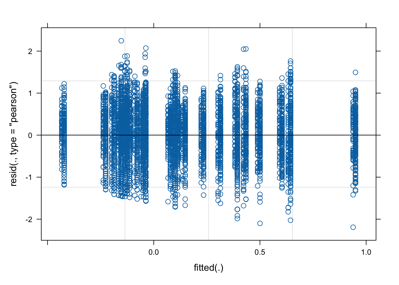 In order to estimate the parameters of our model, we use lme4::lmer.